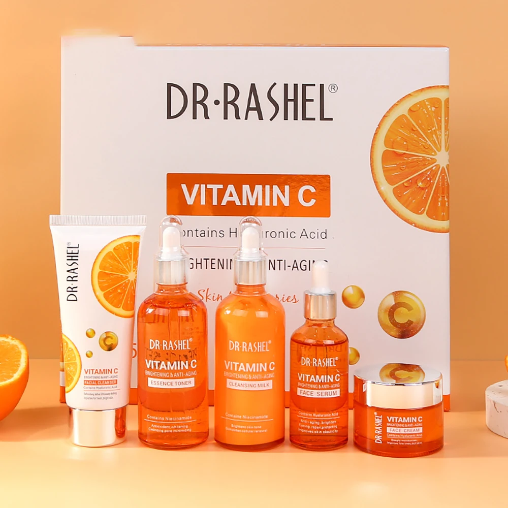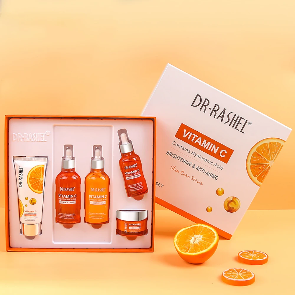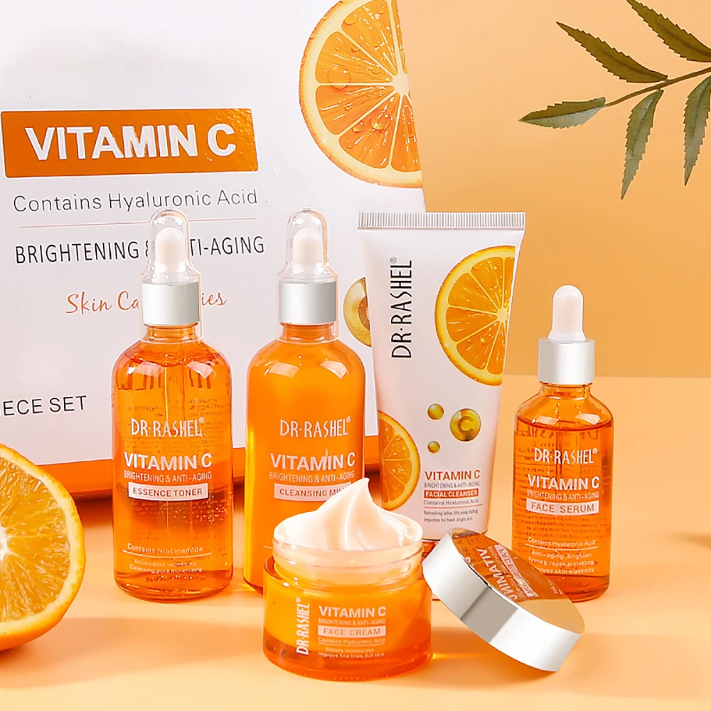 5Pcs Vitamin C Serum Whitening Face Wash Firming Lifting Facial Cream Face Serum Skin Care Sets emulsifiers Black Spot Removal