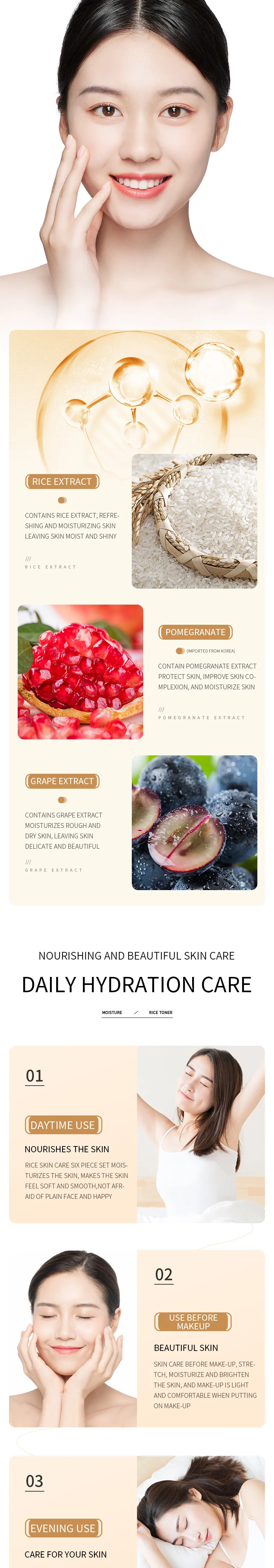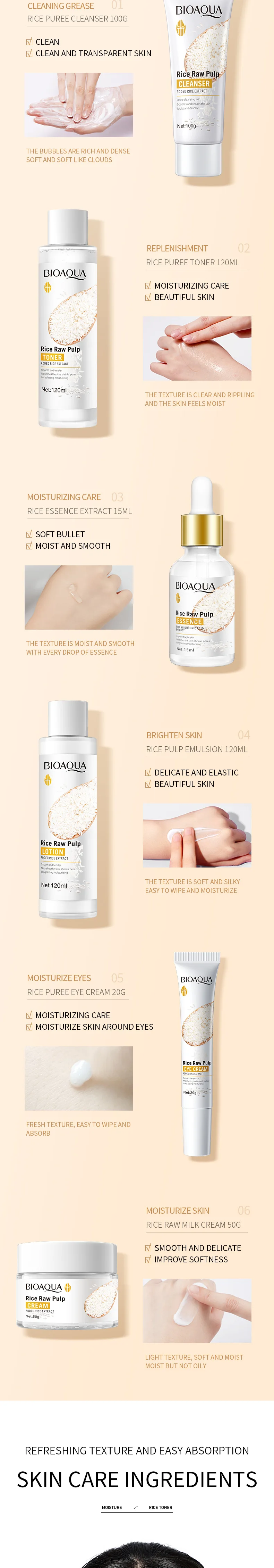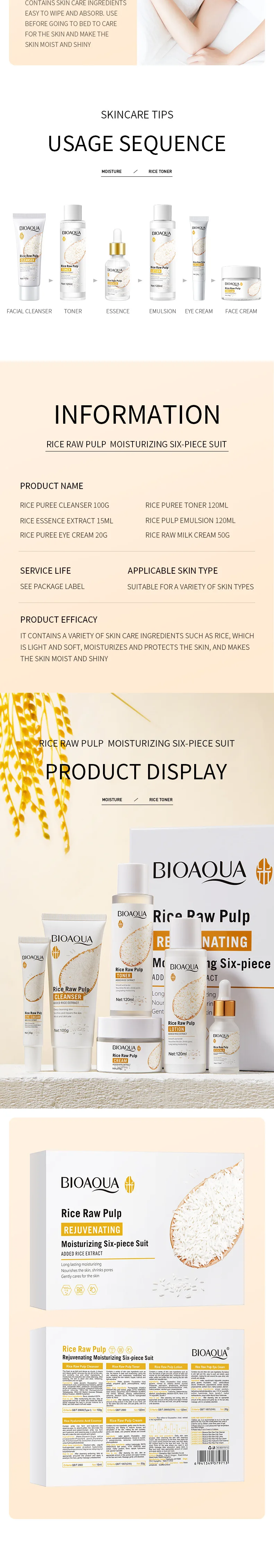 BIOAQUA 6pcs/set Rice Raw Pulp Skin Care Sets Face Cream Serum Anti wrinkle Moisturizing Facial Cleanser Toner Korean Face Care